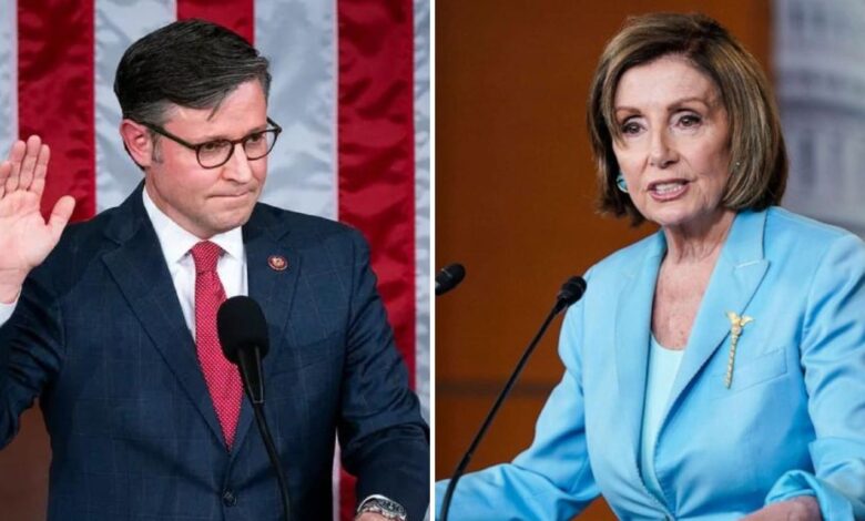 House Speaker Mike Johnson brushed aside criticism from Democrats that he is holding off the swearing in of a new Democratic House member out of spite, noting that he’s only following past precedent set by then-Speaker Nancy Pelosi (D-Calif.).